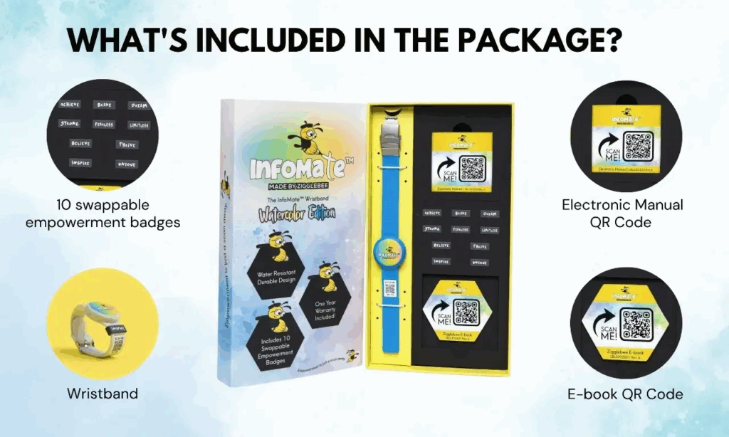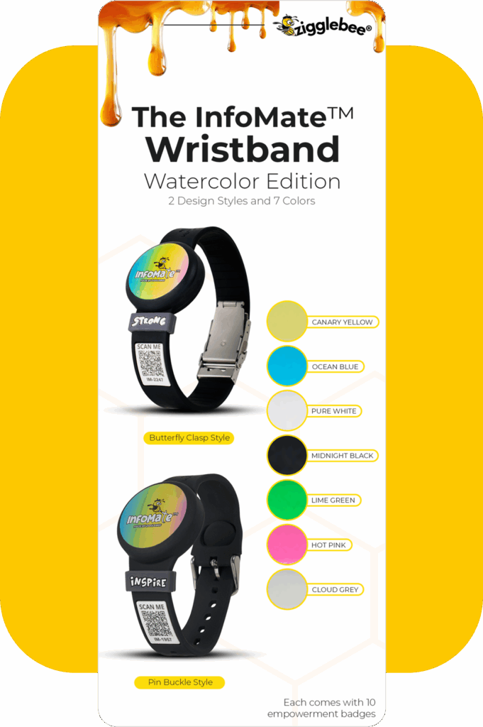 The InfoMate™ Wristband is a smart, scannable ID designed to store and share important information about your loved one. When scanned, it instantly displays a secure profile with emergency contacts, medical details, and other essential information — helping caregivers, teachers, and first responders respond quickly and accurately.