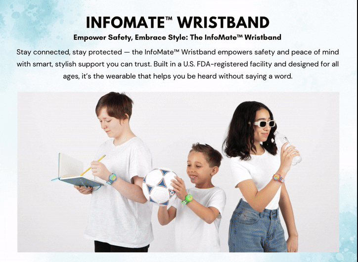 My son is nonverbal, so having the InfoMate Wristband feels like a first aid kit on his wrist. It keeps all of his vital information — medications, allergies, communication tips — right at our fingertips. If anything ever happens, responders can quickly access everything they need. It helps us stay connected and prepared, even when I can’t be right by his side. That kind of reassurance is priceless.